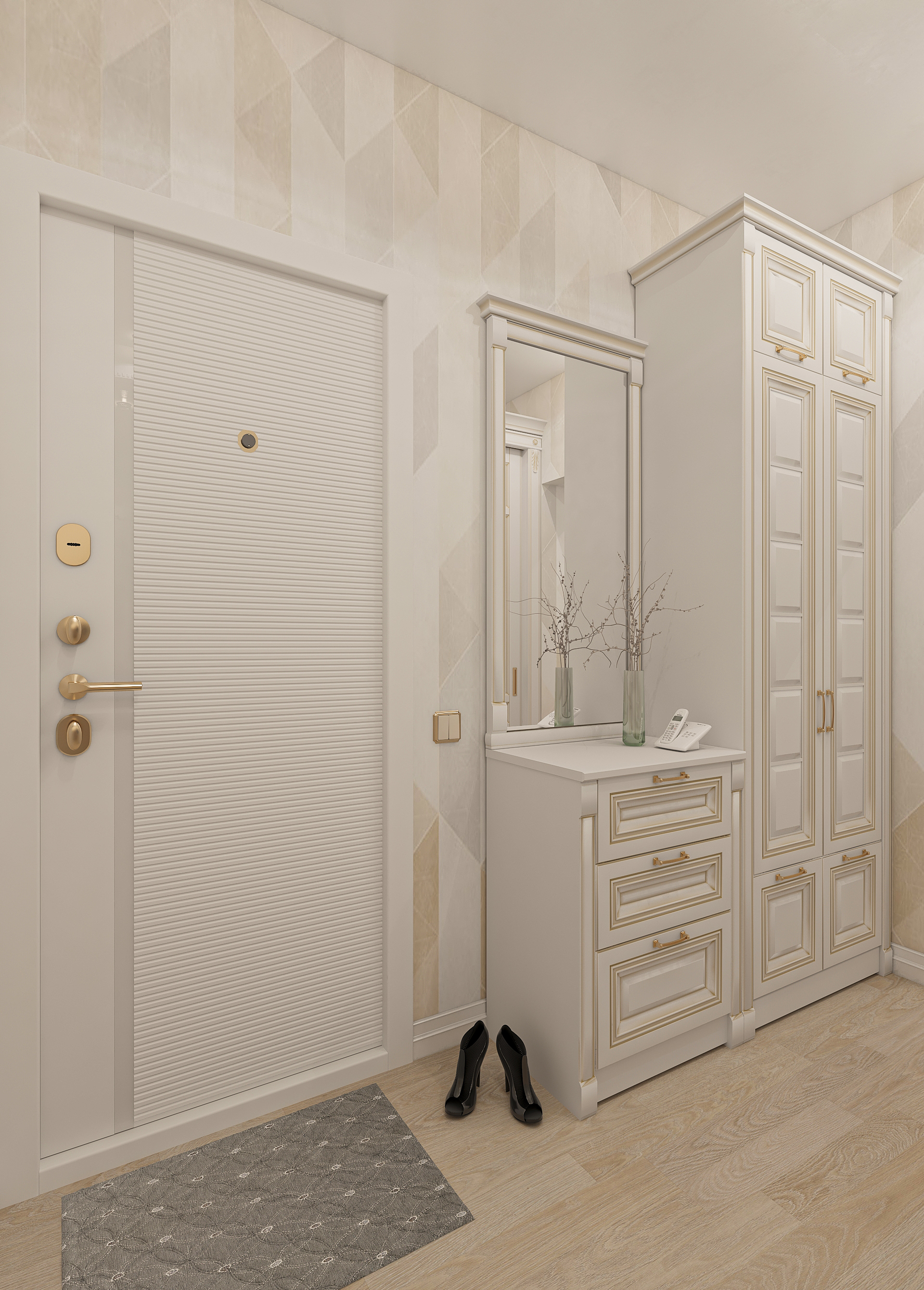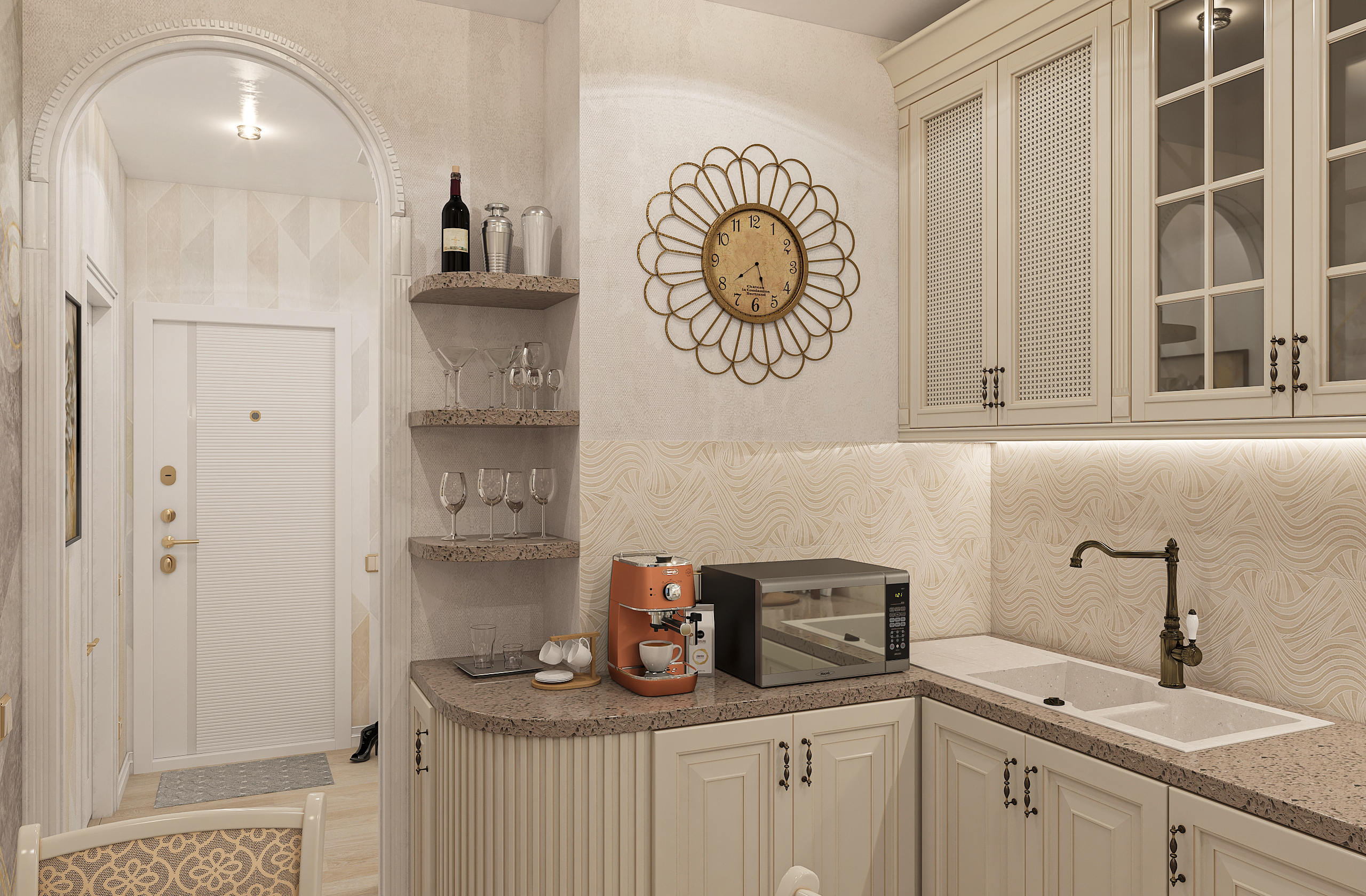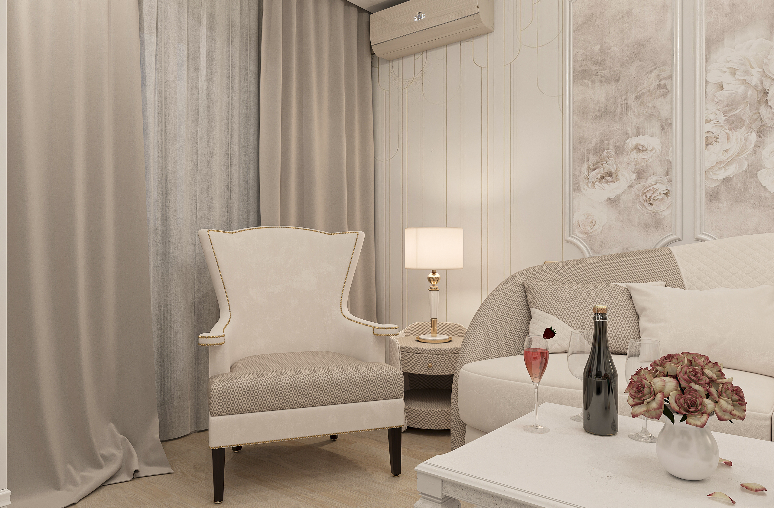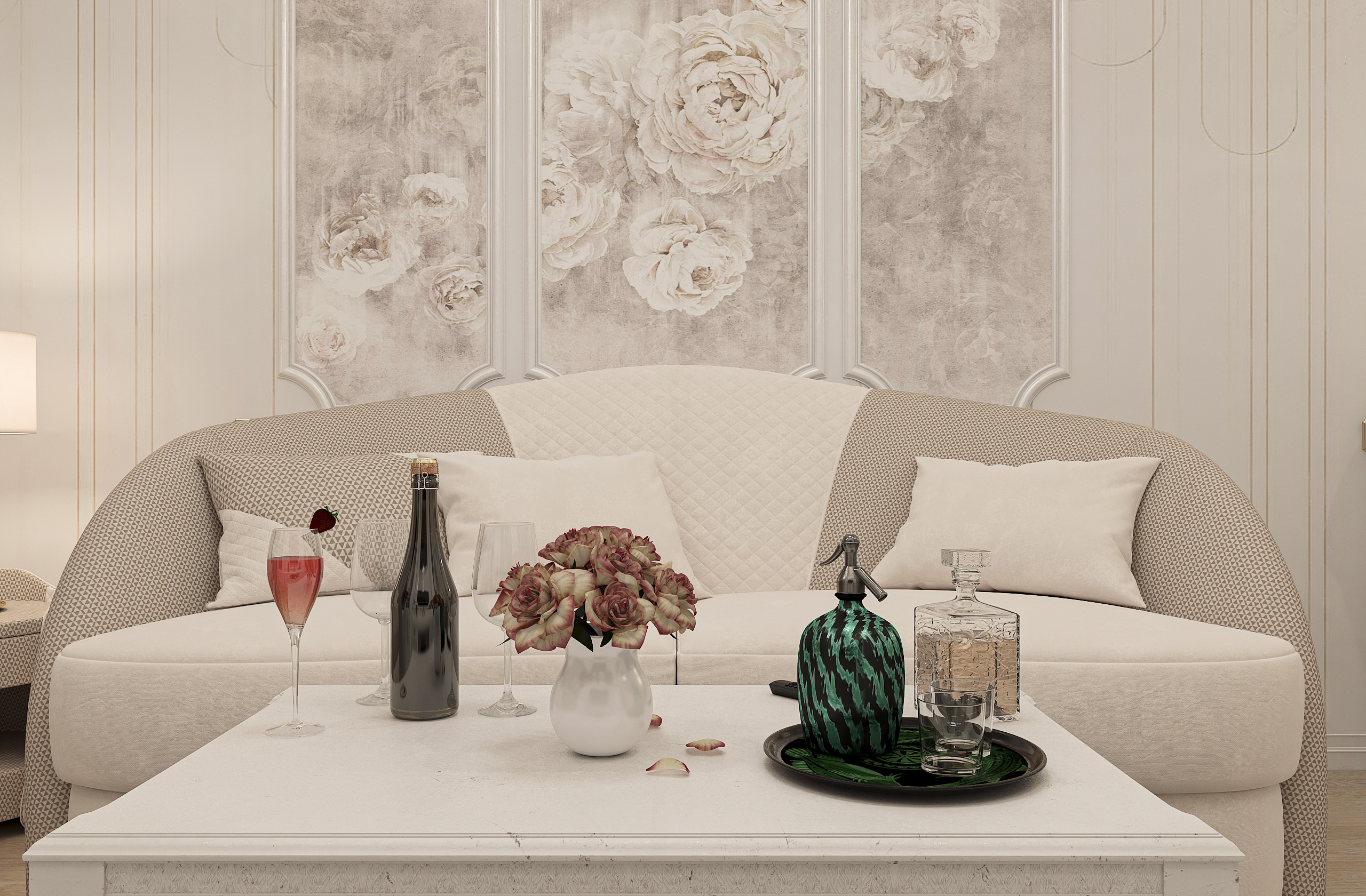 Уютная двухкомнатная квартира создана для спокойной и красивой жизни пожилой пары. Светлые тона, плавные линии и мягкие материалы наполняют пространство теплом и лёгкостью.