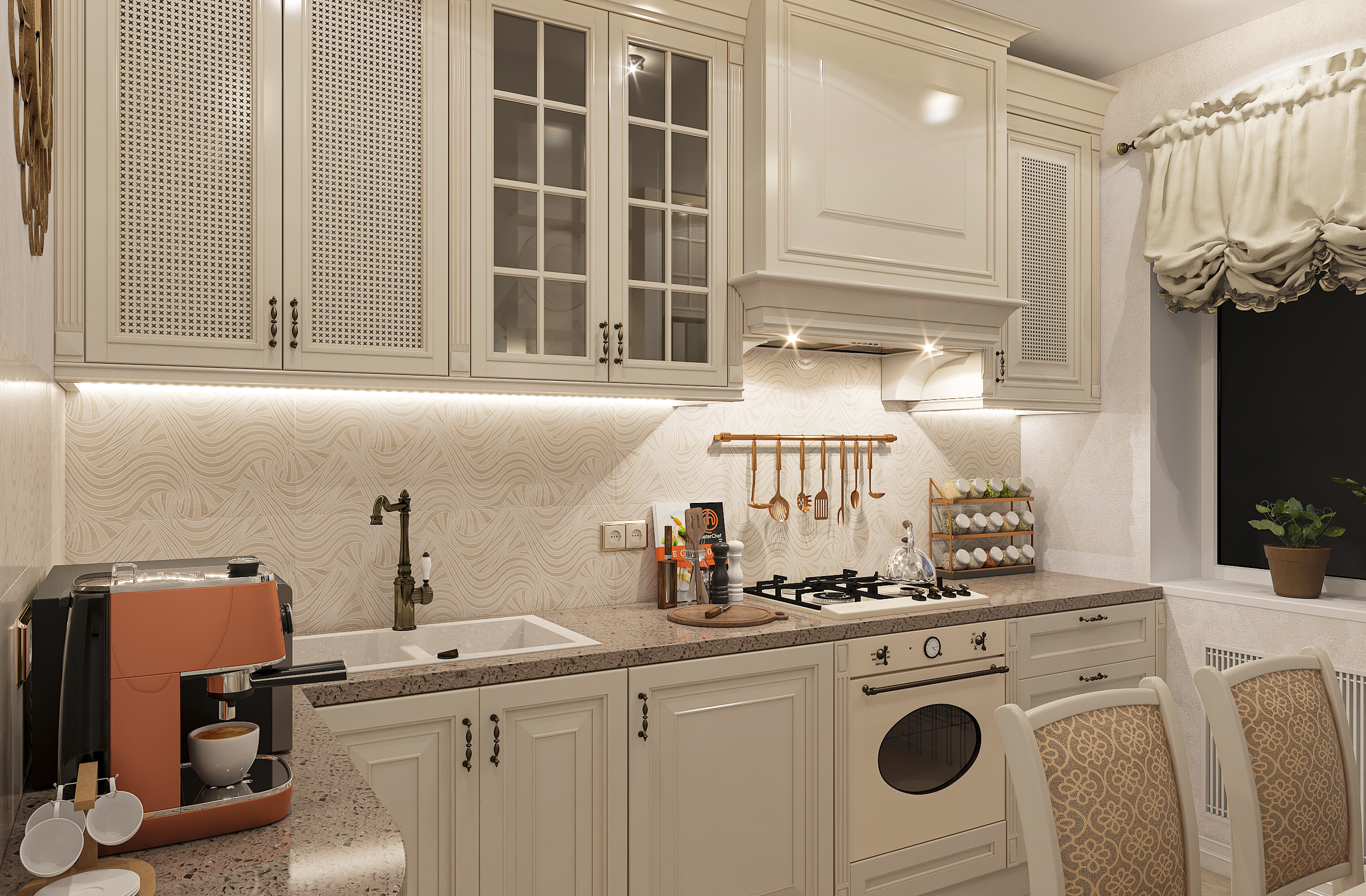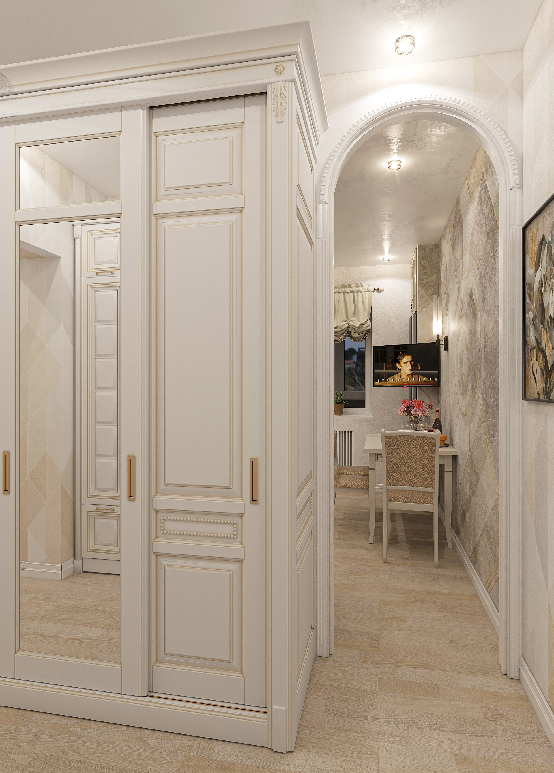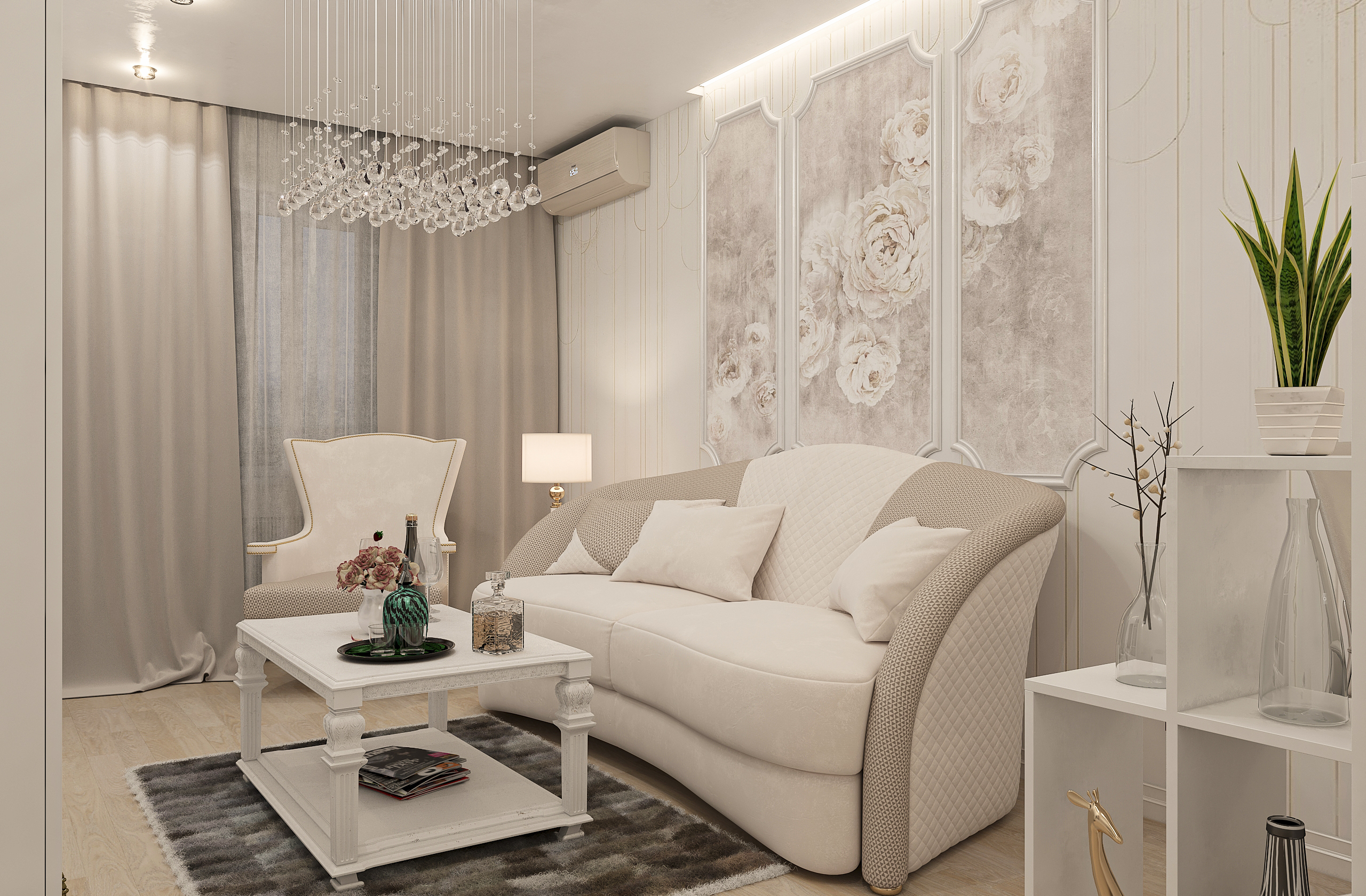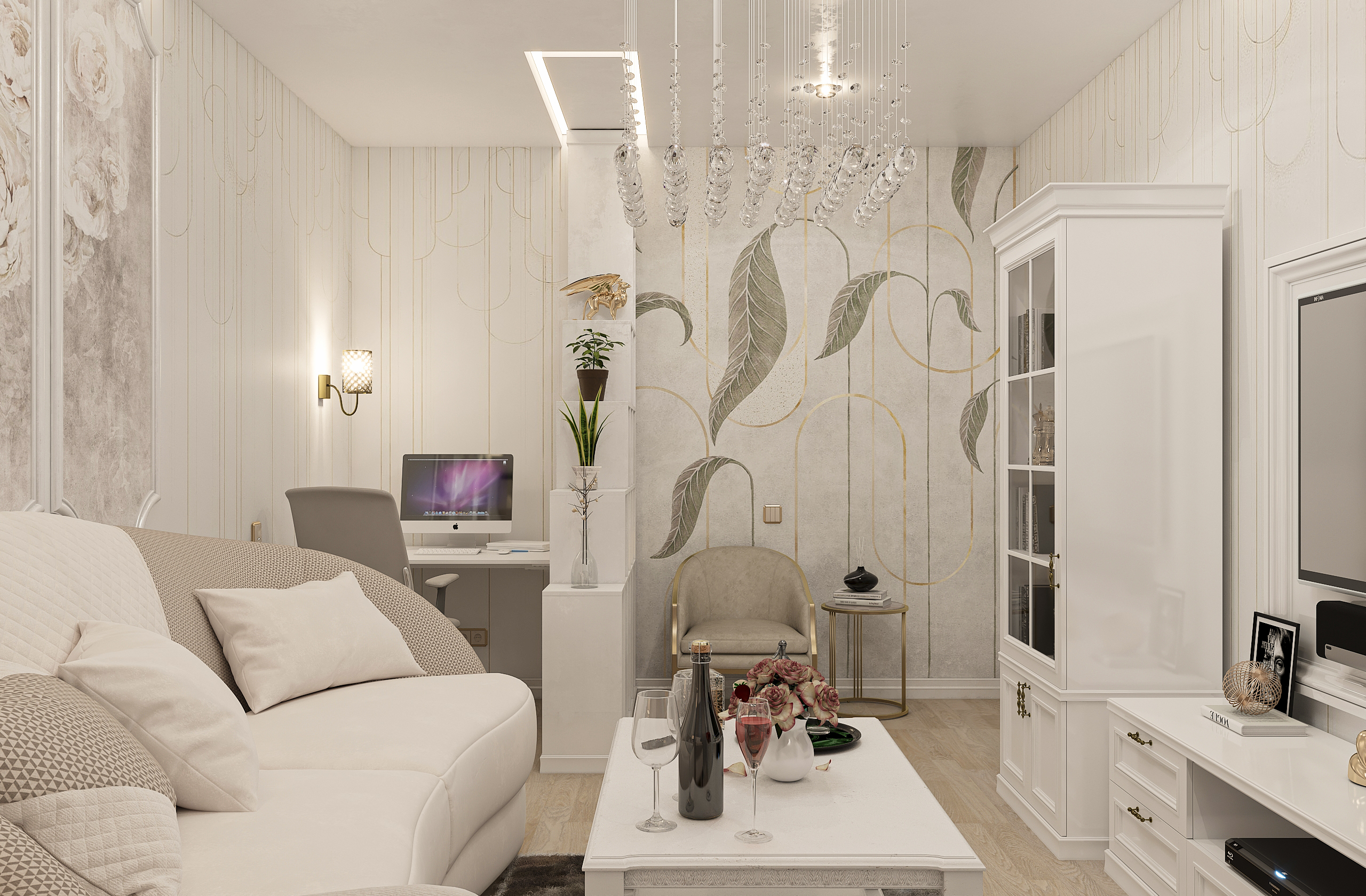Уютная двухкомнатная квартира создана для спокойной и красивой жизни пожилой пары. Светлые тона, плавные линии и мягкие материалы наполняют пространство теплом и лёгкостью.