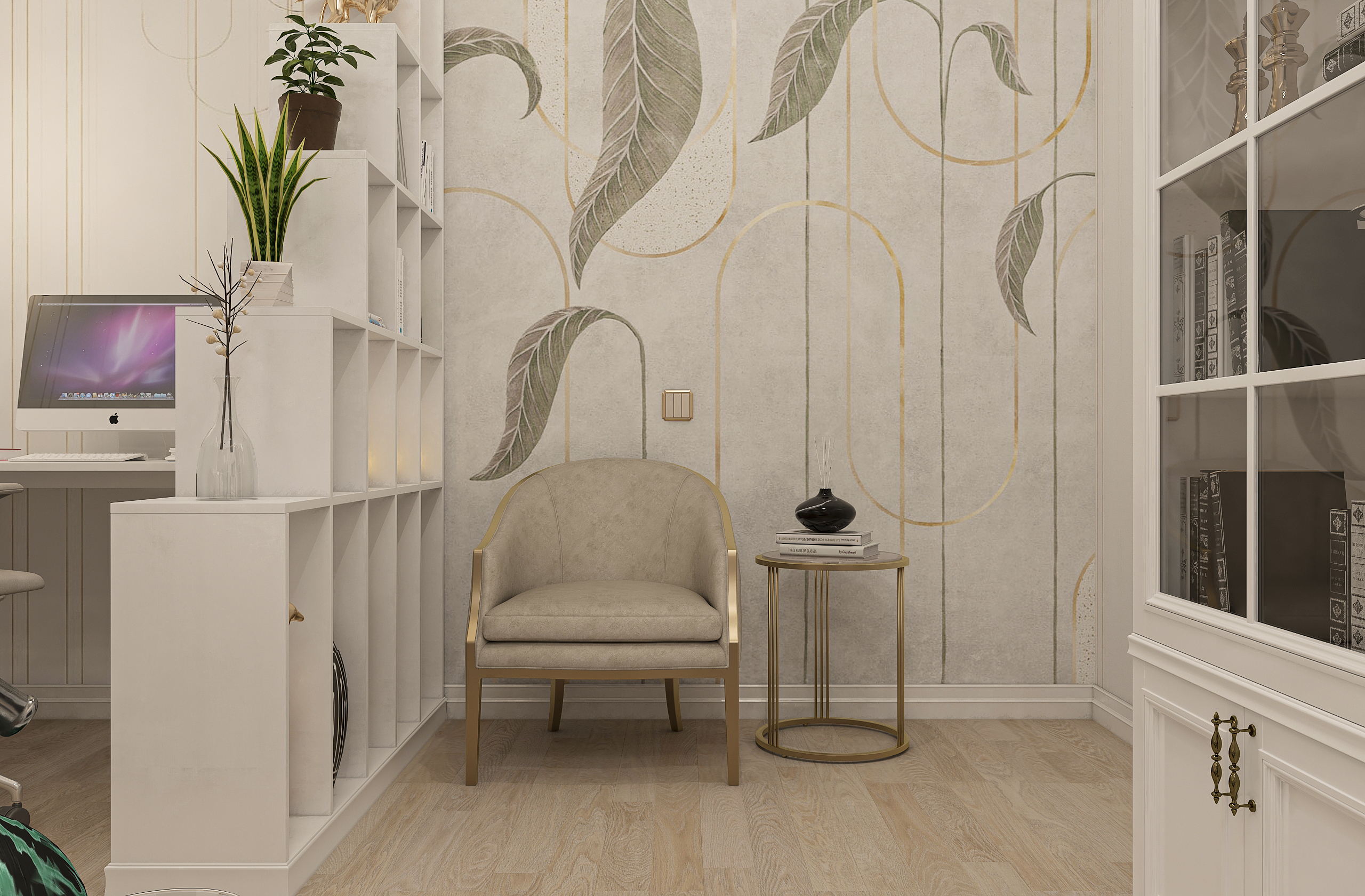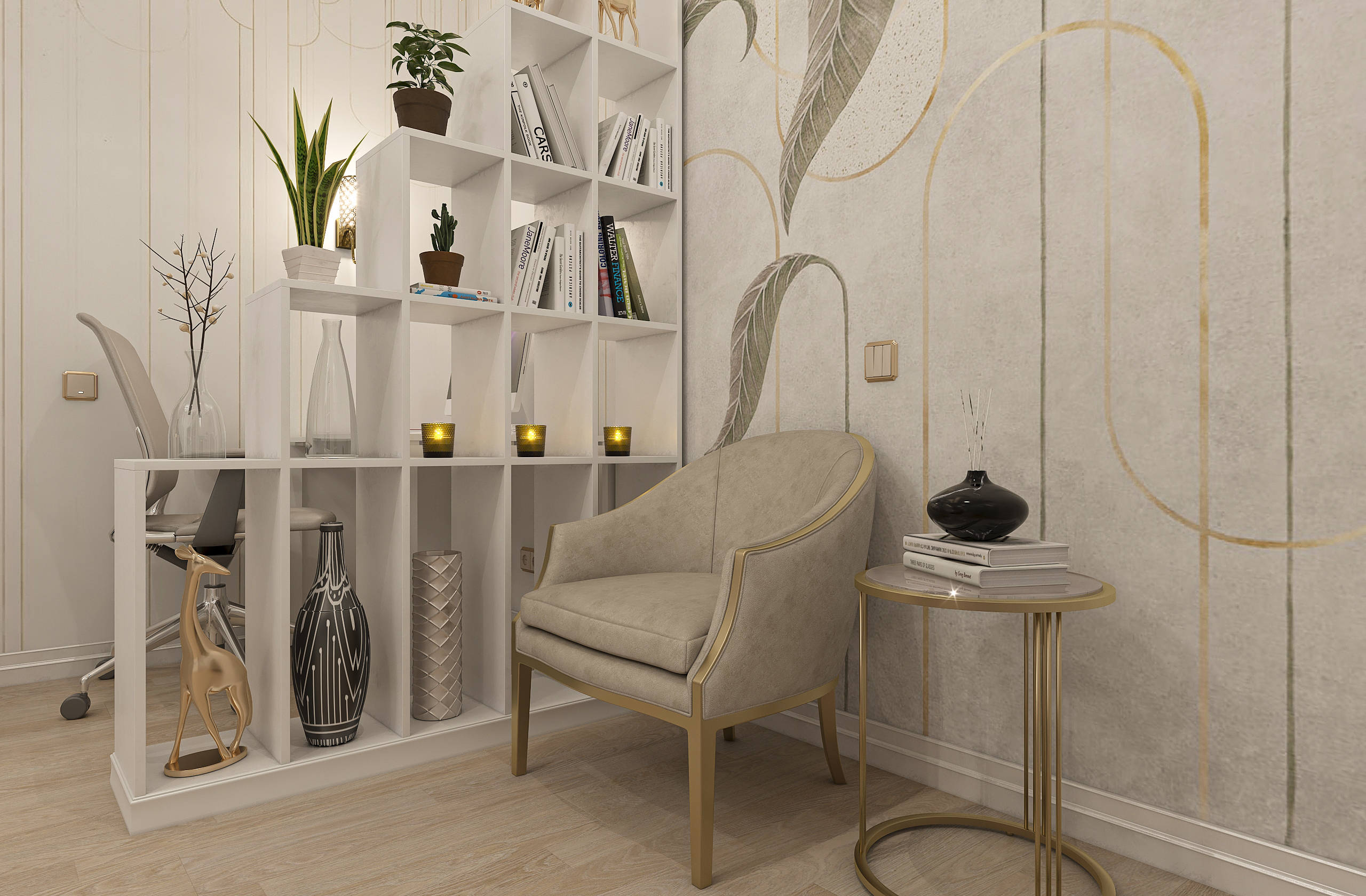 Гостиная объединяет зону отдыха и рабочее место — всё под рукой, без потери уюта.