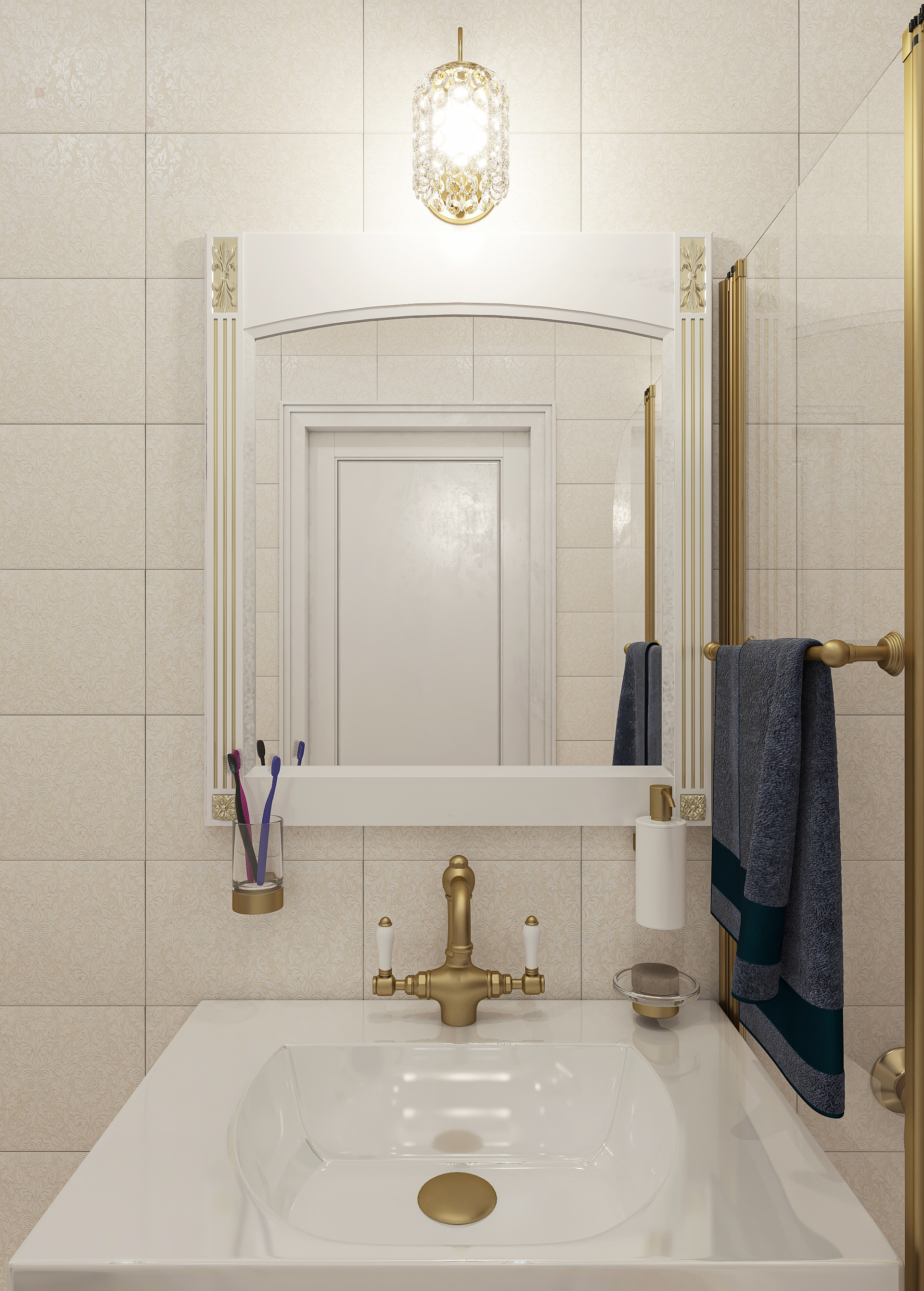 Санузел и прихожая продуманы до мелочей: безопасное освещение, элегантные акценты и комфорт в деталях.