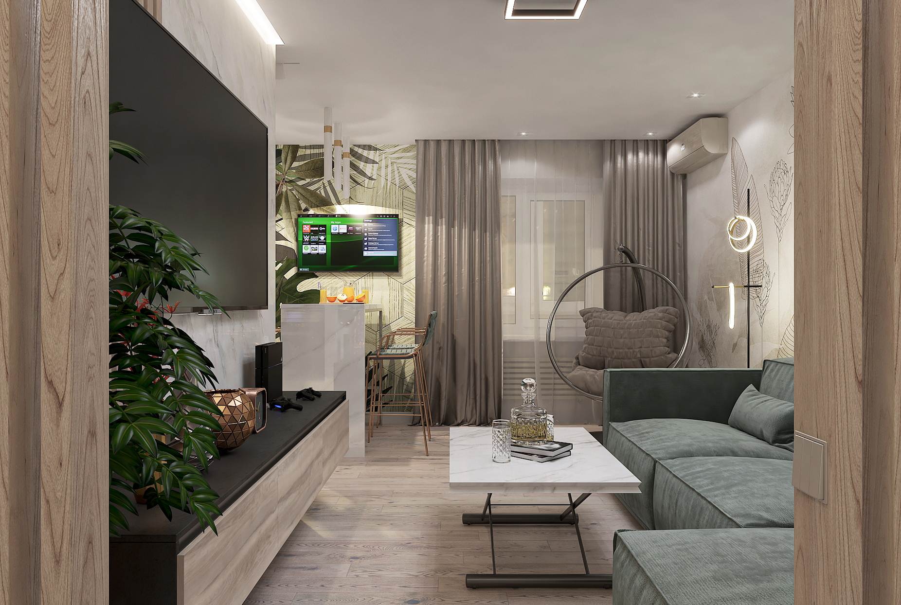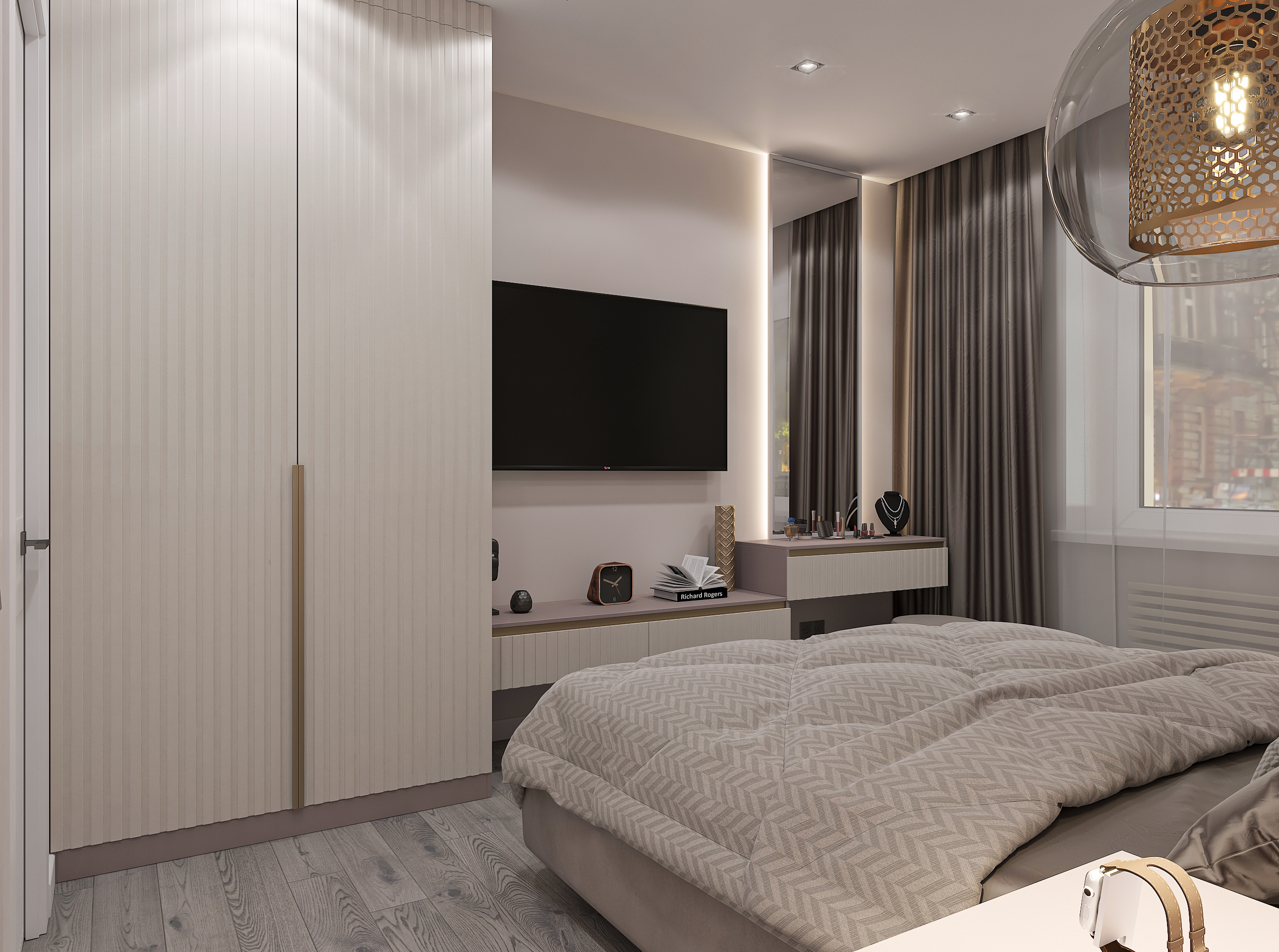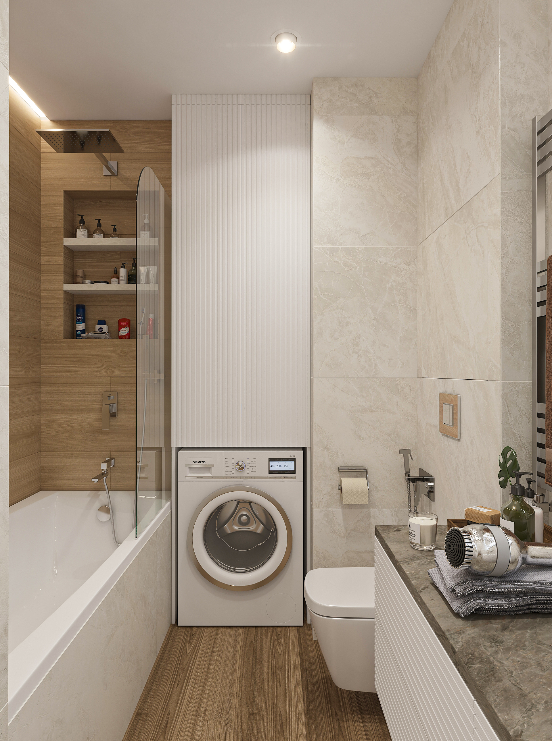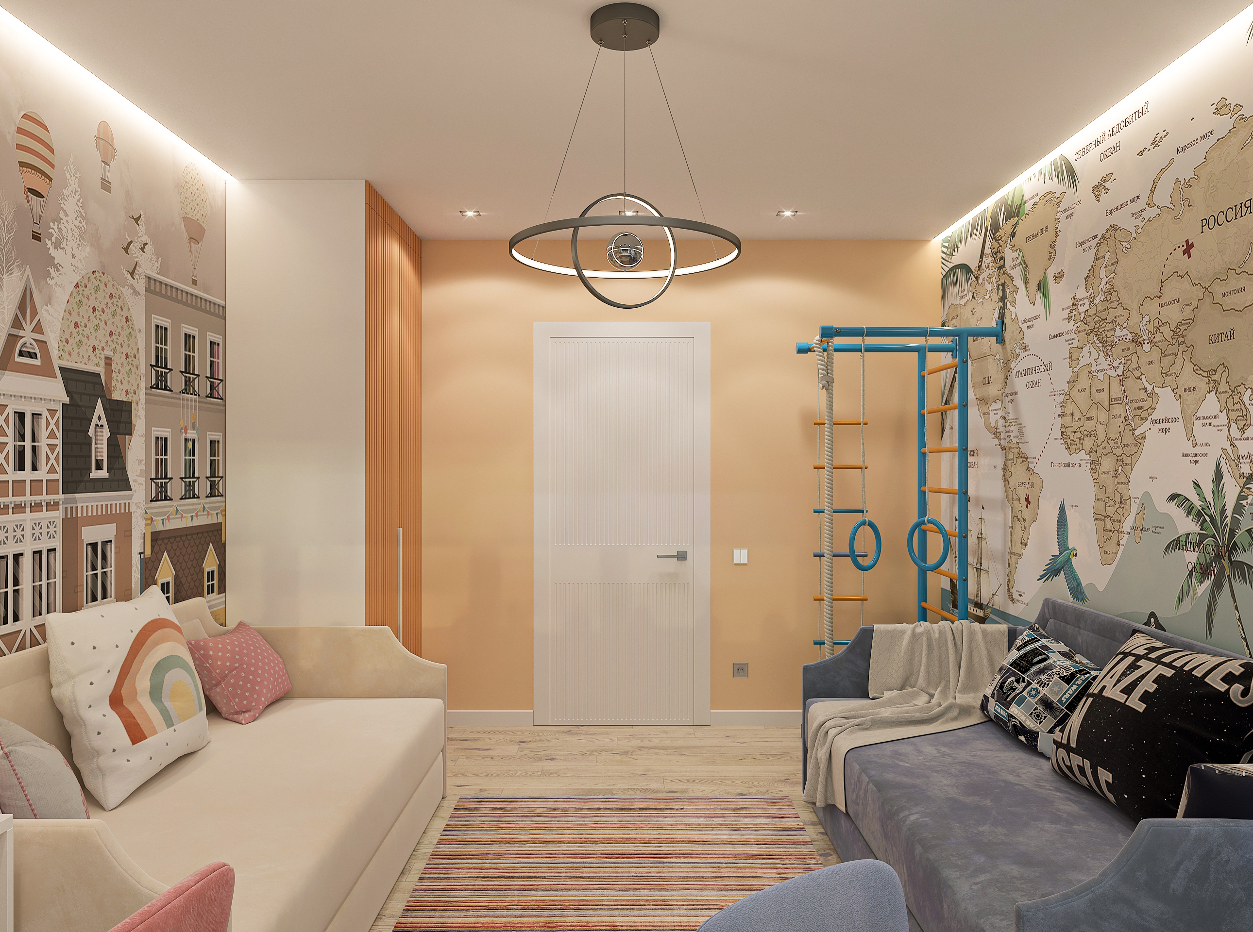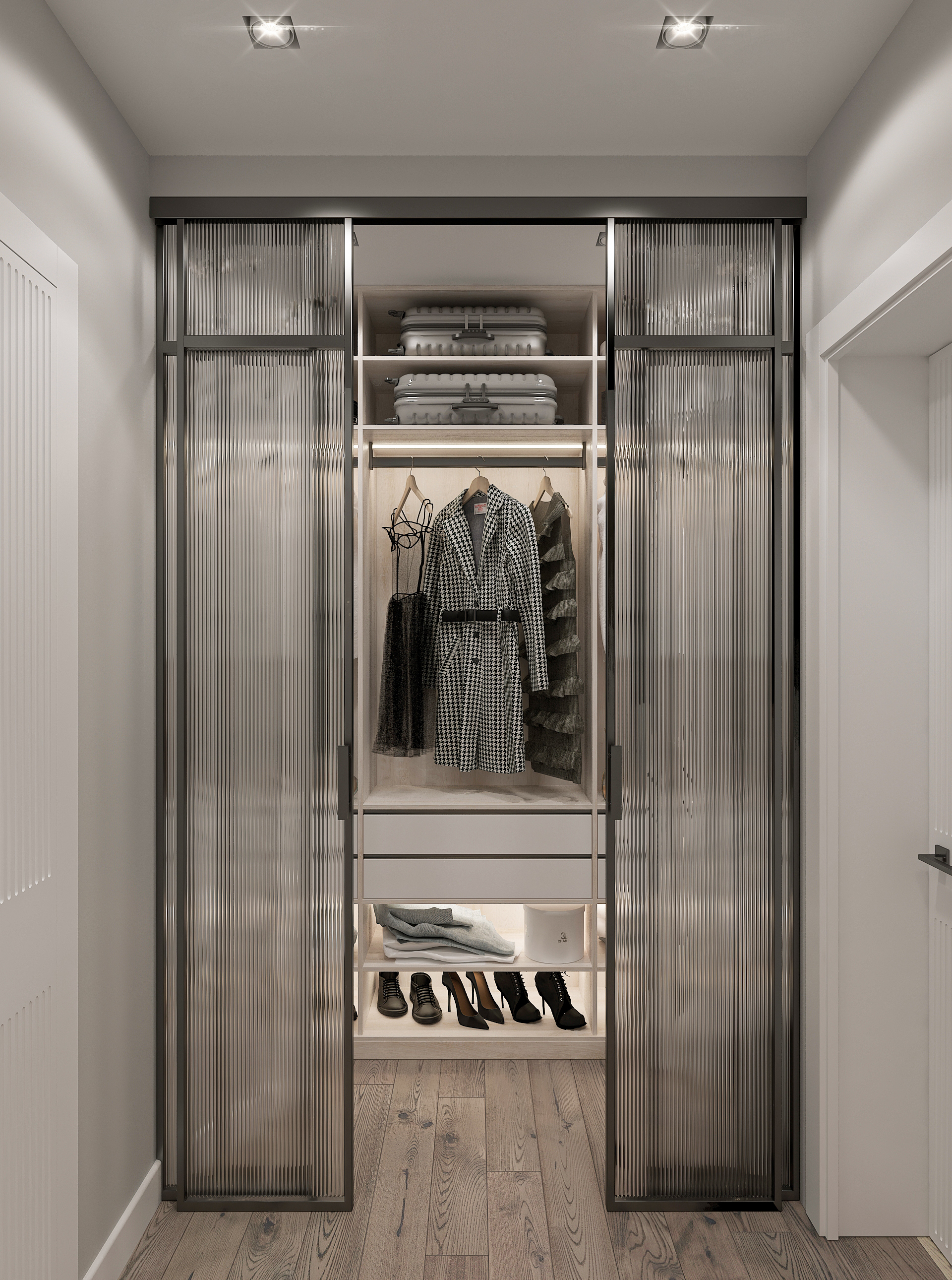 Объединённая гостиная и кухня с природными акцентами создают уют для семьи и гостей. Яркая детская с учебными зонами и удобным хранением, спокойная спальня родителей и лоджия-зона для отдыха продуманы для комфорта. Просторная отдельная гардеробная с раздвижными стеклянными перегородками позволяет удобно хранить одежду и обувь всей семьи, поддерживает порядок в повседневной жизни. Продуманное многоуровневое освещение и практичные материалы подчёркивают функциональность и современный стиль проекта.