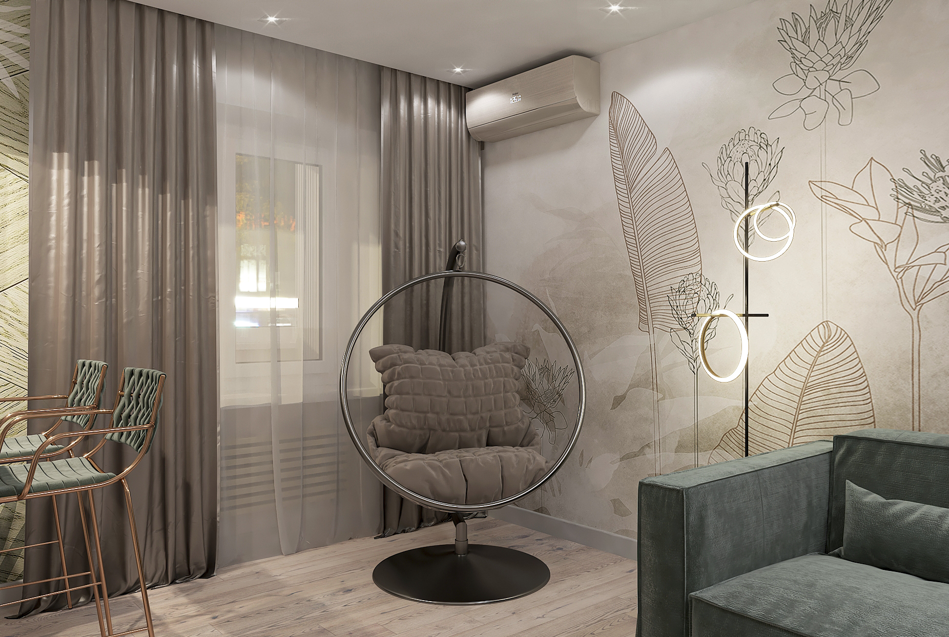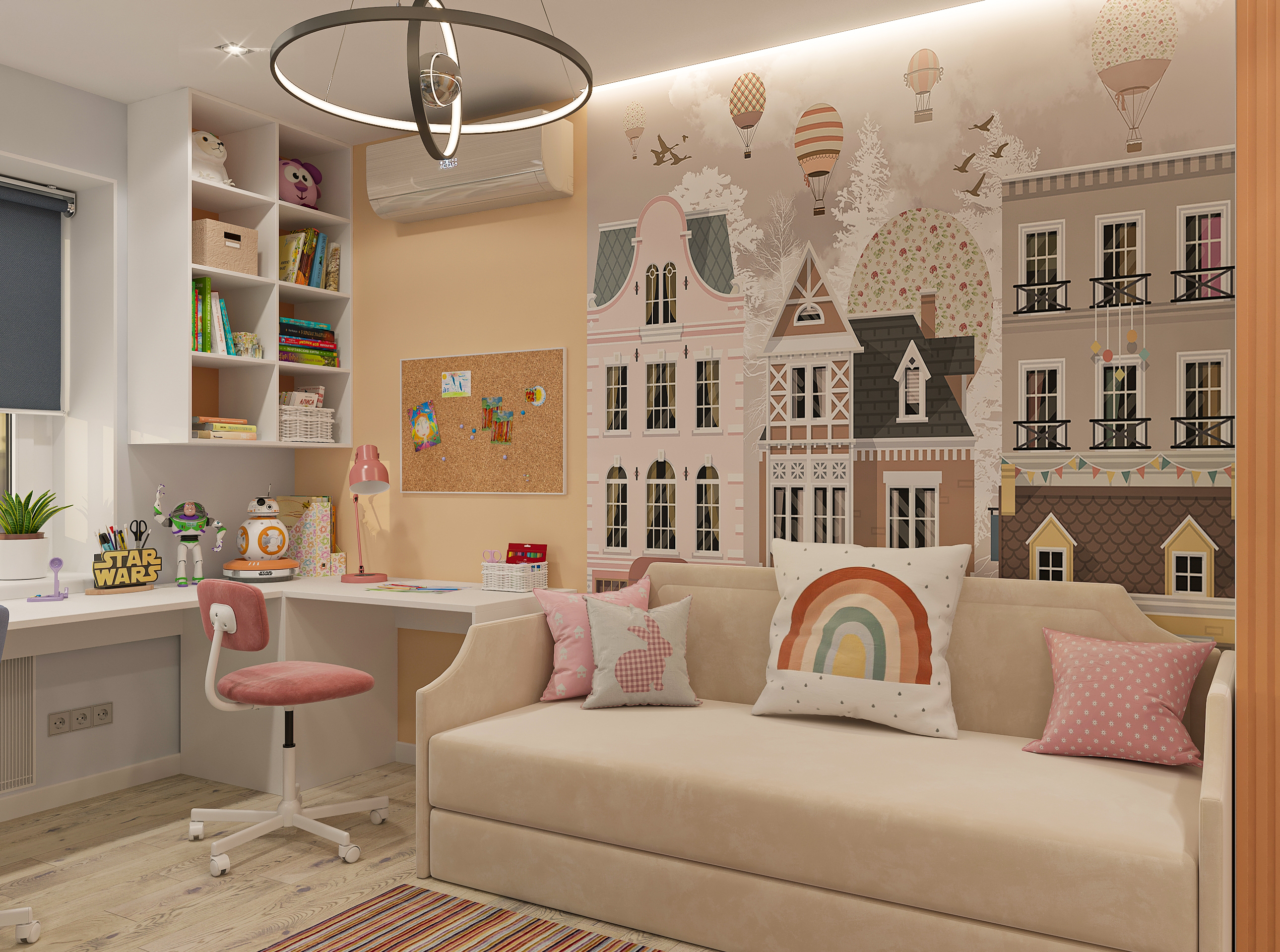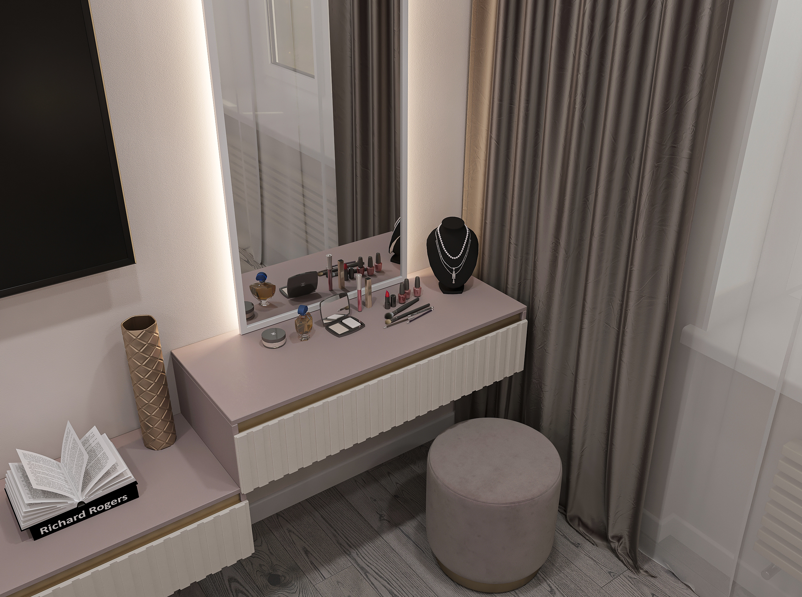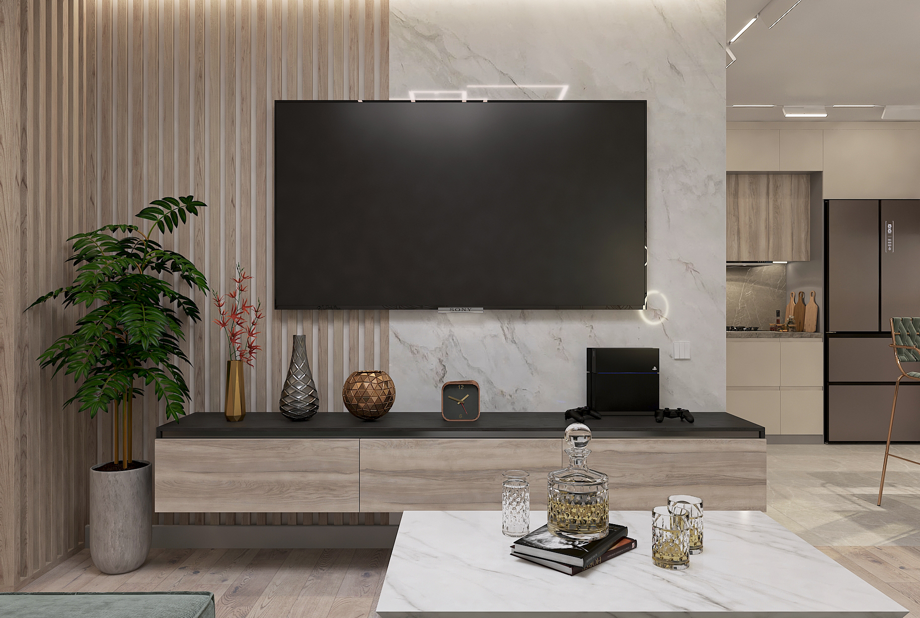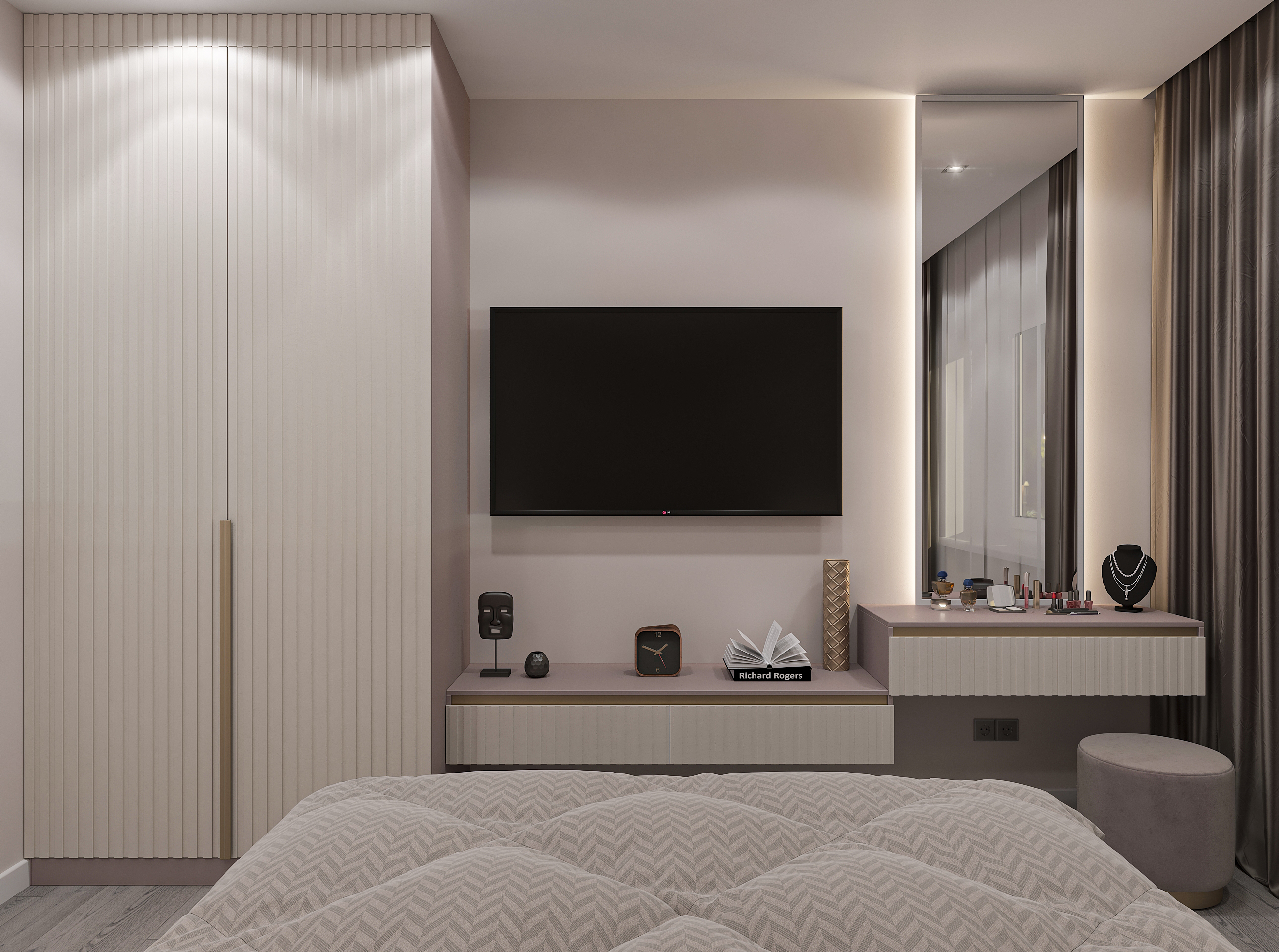 Объединённая гостиная и кухня с природными акцентами создают уют для семьи и гостей. Яркая детская с учебными зонами и удобным хранением, спокойная спальня родителей и лоджия-зона для отдыха продуманы для комфорта. Просторная отдельная гардеробная с раздвижными стеклянными перегородками позволяет удобно хранить одежду и обувь всей семьи, поддерживает порядок в повседневной жизни. Продуманное многоуровневое освещение и практичные материалы подчёркивают функциональность и современный стиль проекта.
