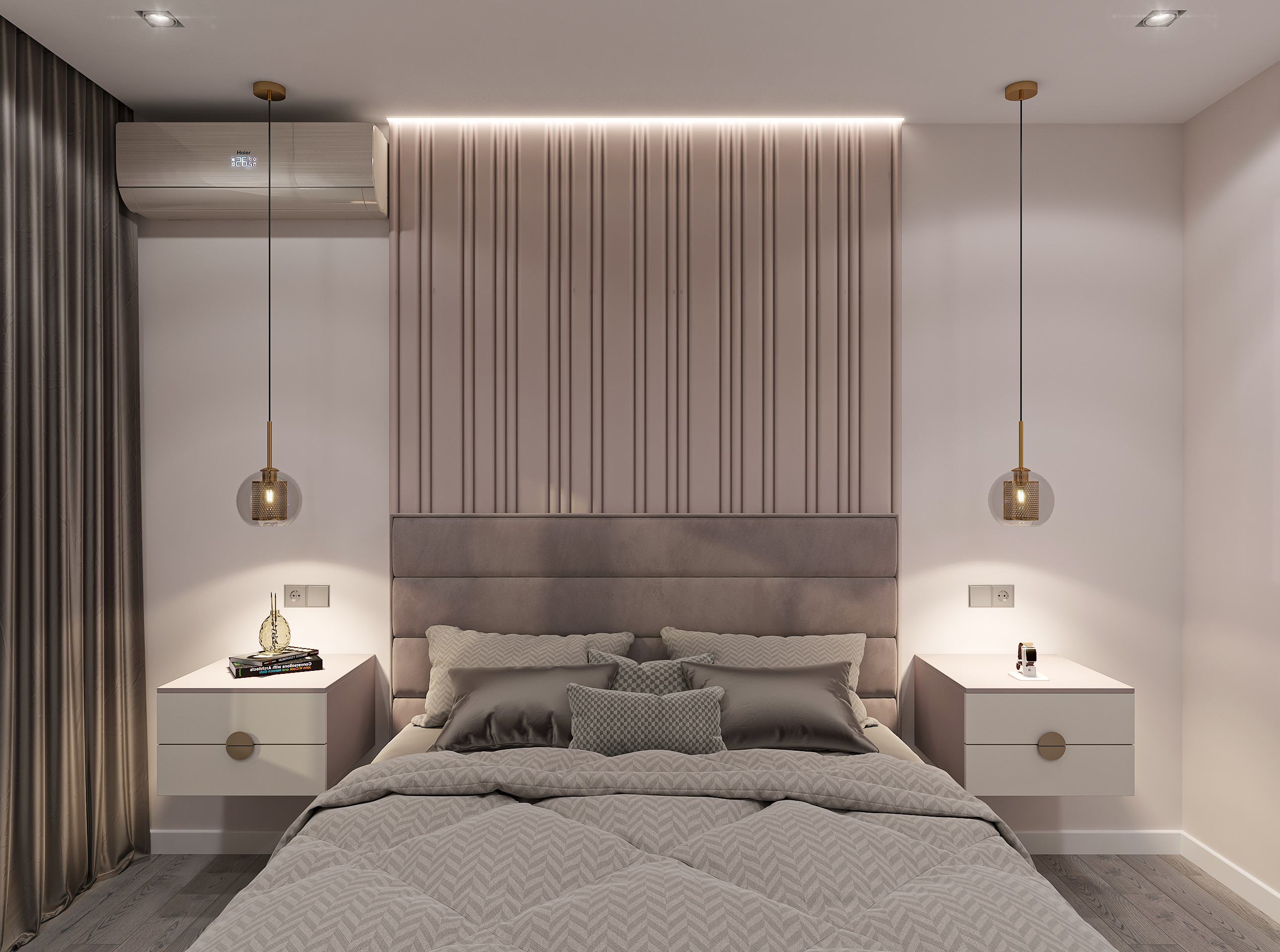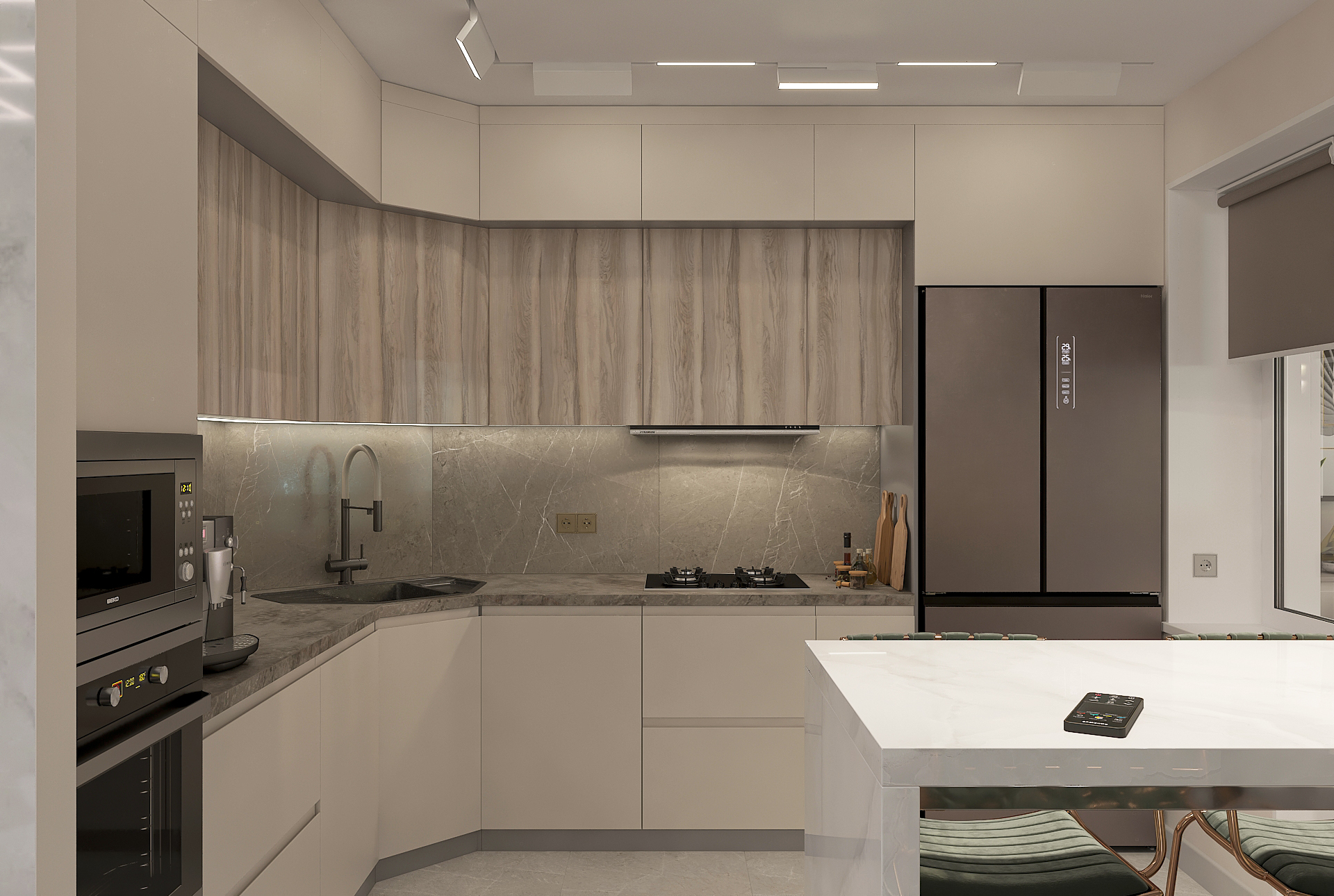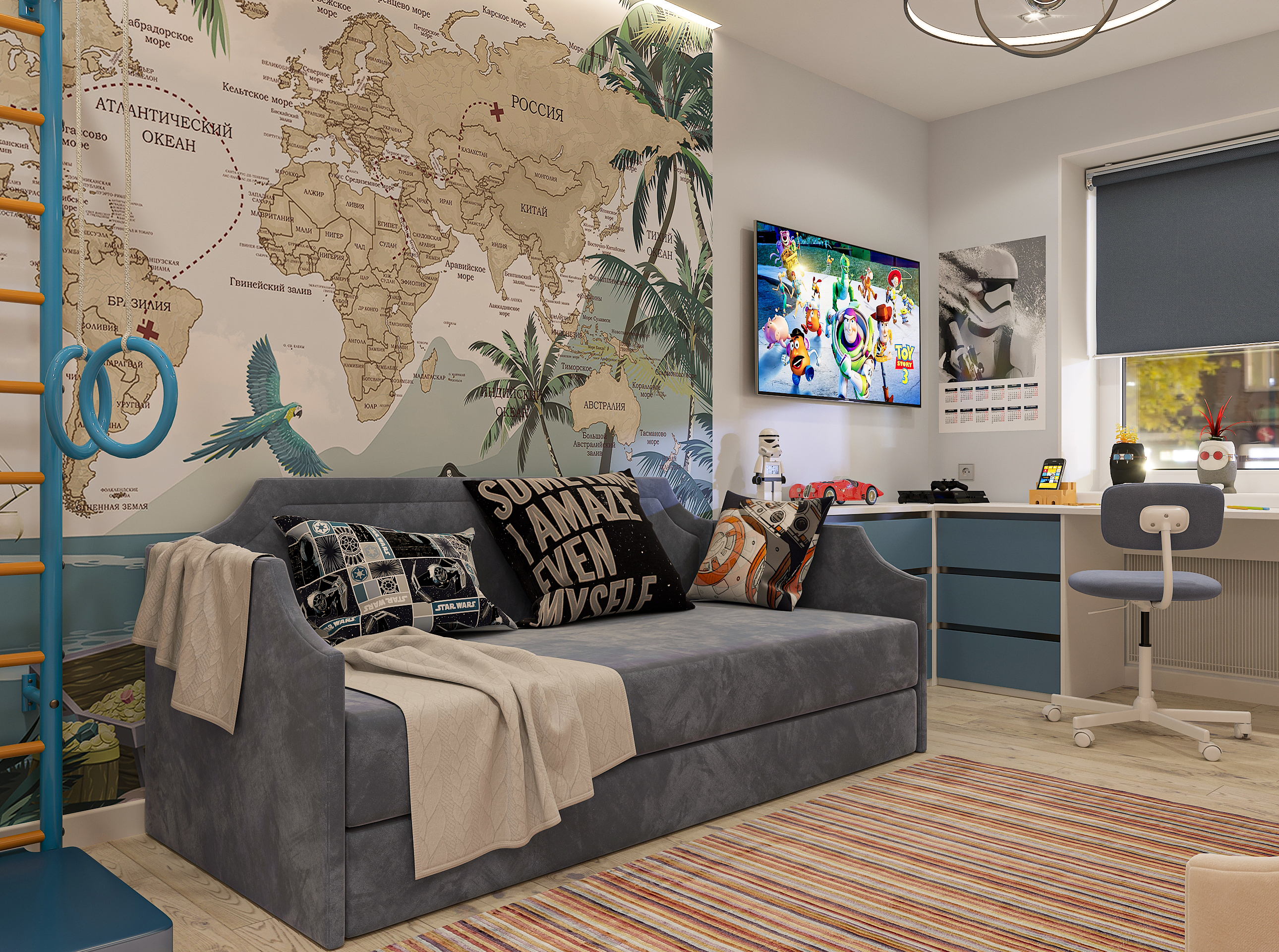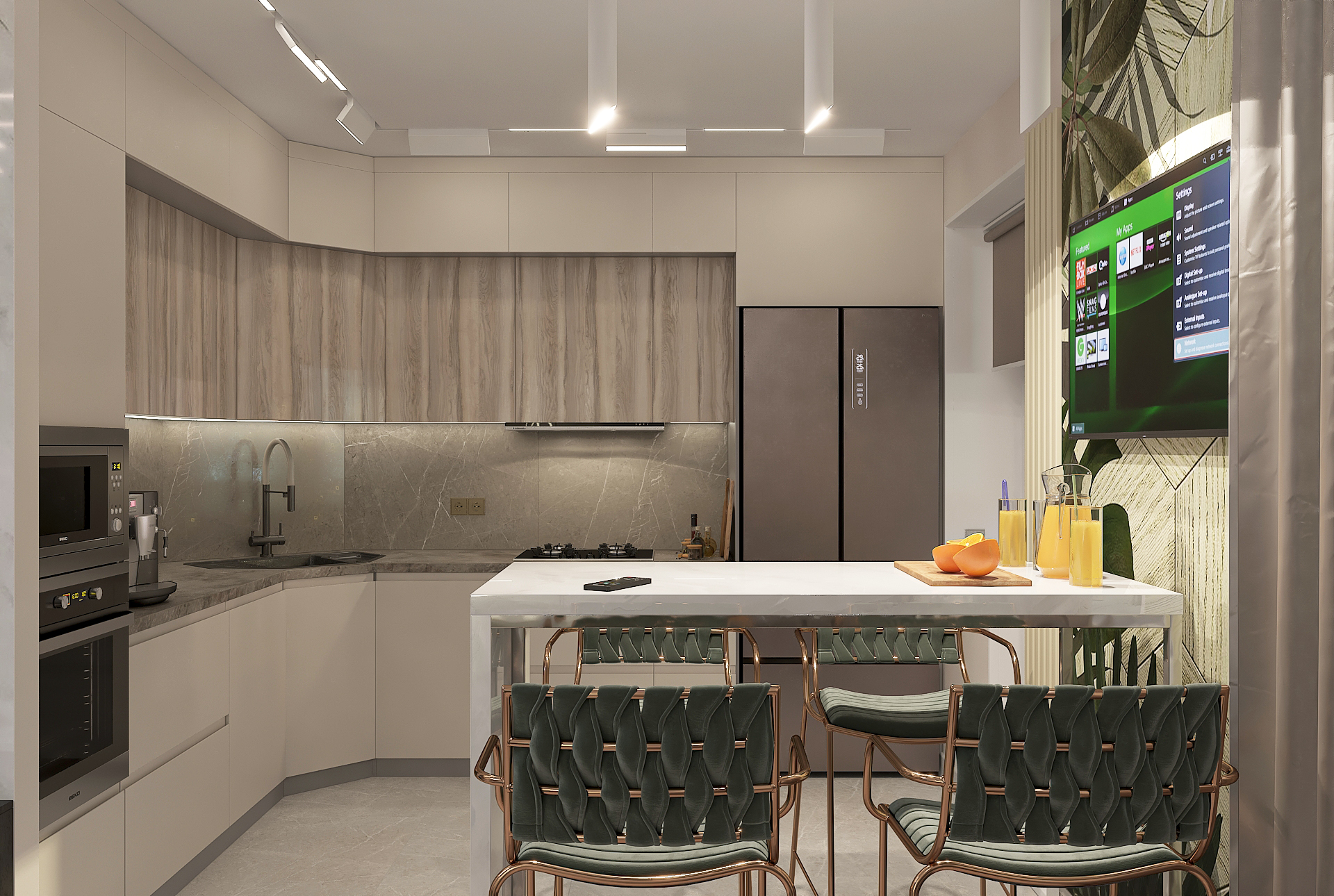Объединённая гостиная и кухня с природными акцентами создают уют для семьи и гостей. Яркая детская с учебными зонами и удобным хранением, спокойная спальня родителей и лоджия-зона для отдыха продуманы для комфорта. Просторная отдельная гардеробная с раздвижными стеклянными перегородками позволяет удобно хранить одежду и обувь всей семьи, поддерживает порядок в повседневной жизни. Продуманное многоуровневое освещение и практичные материалы подчёркивают функциональность и современный стиль проекта.