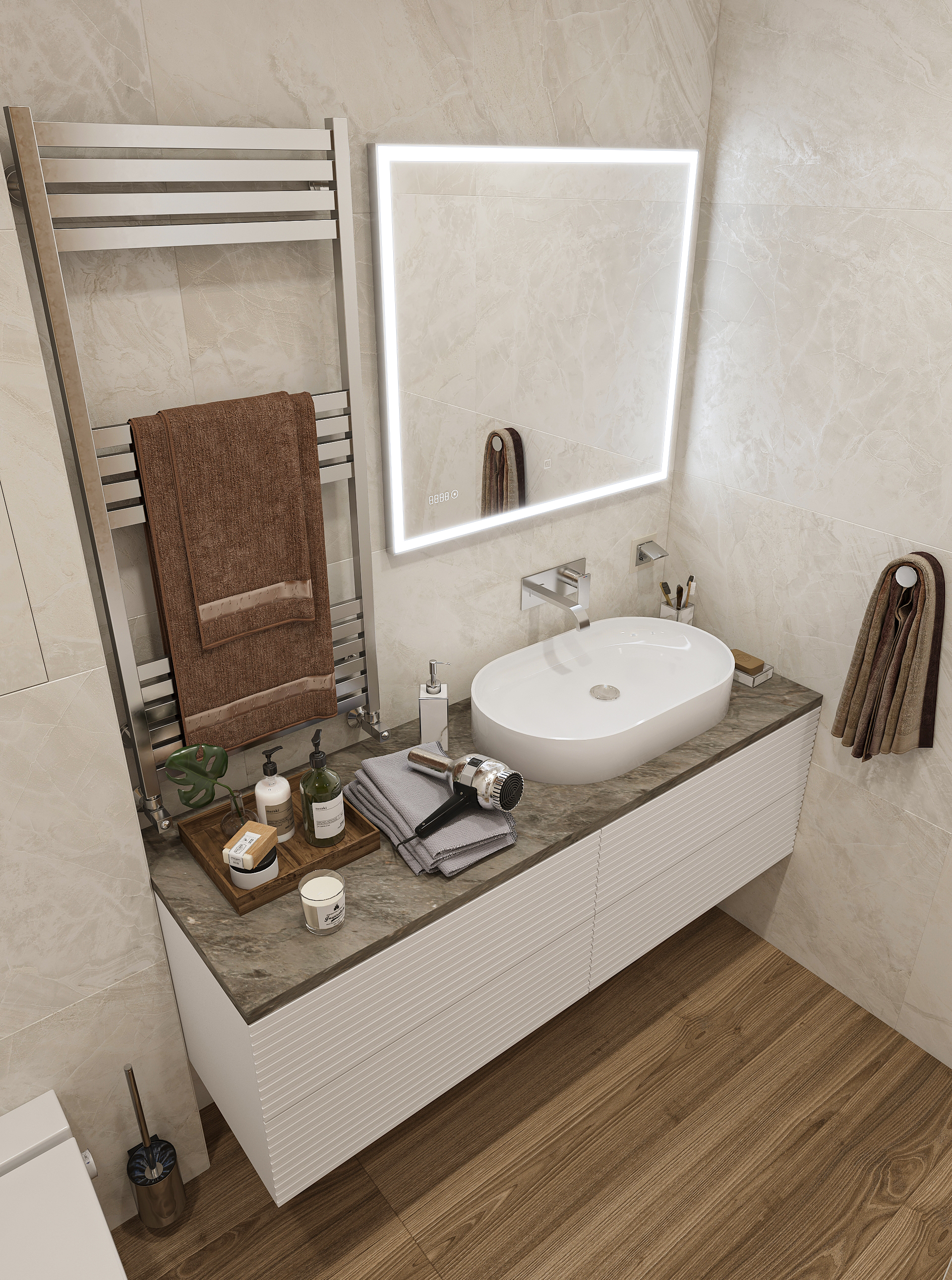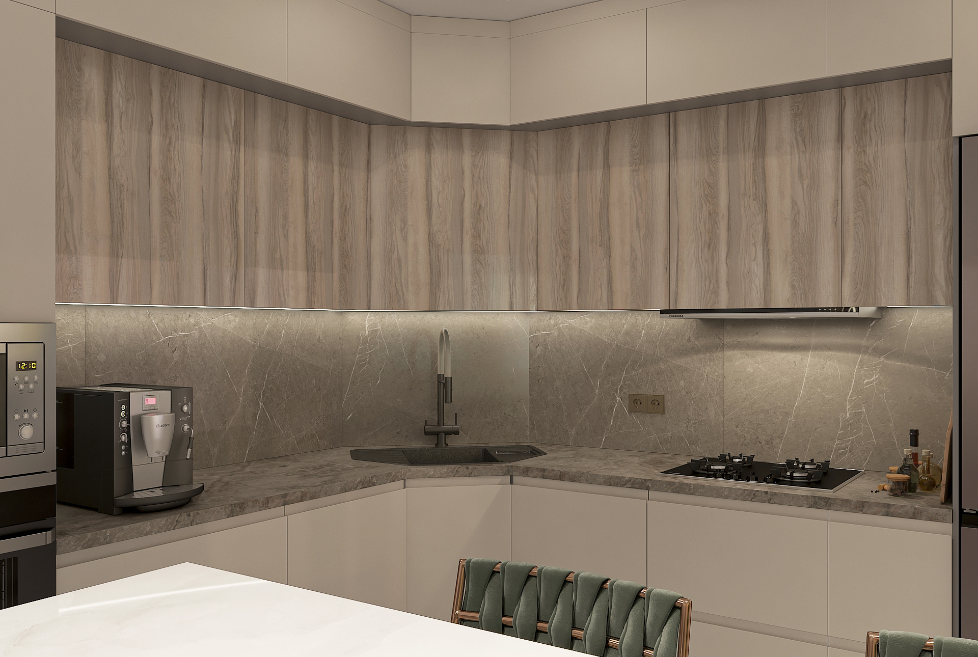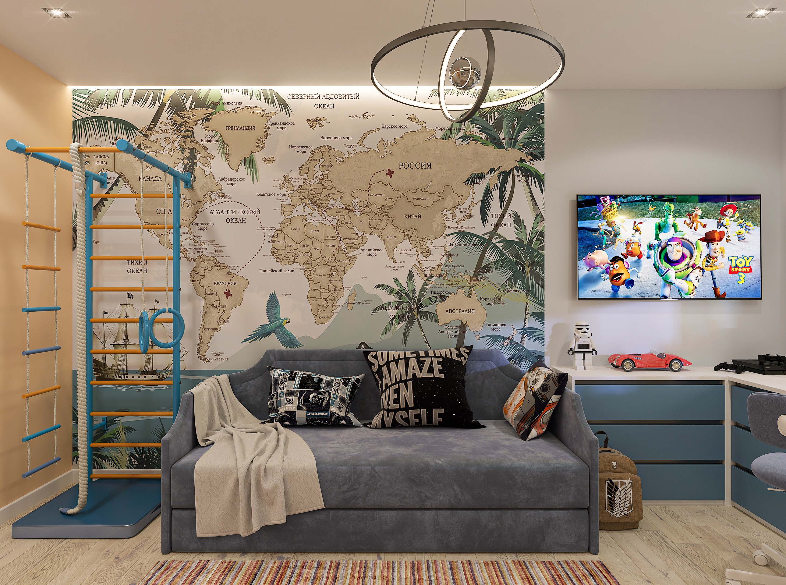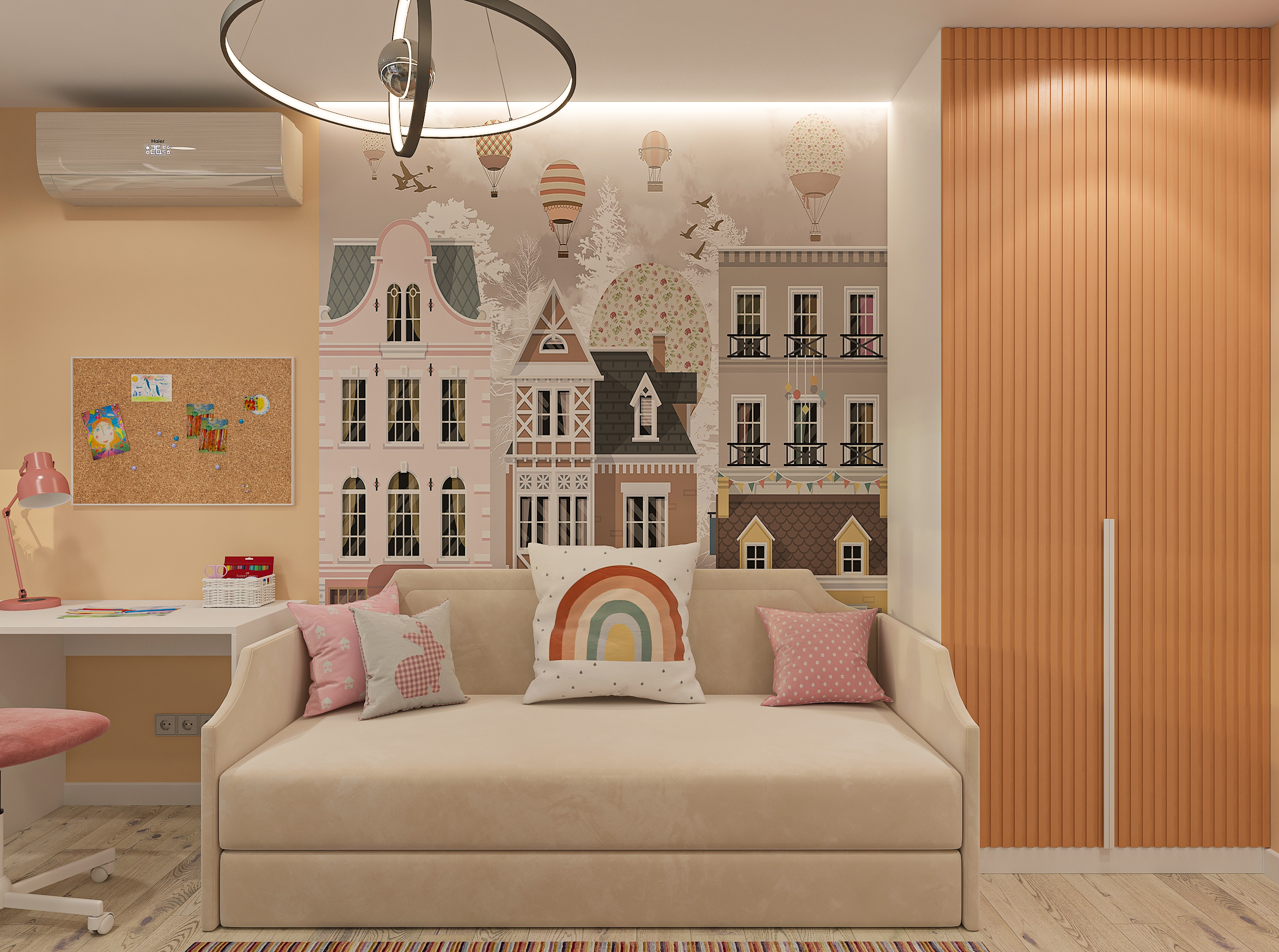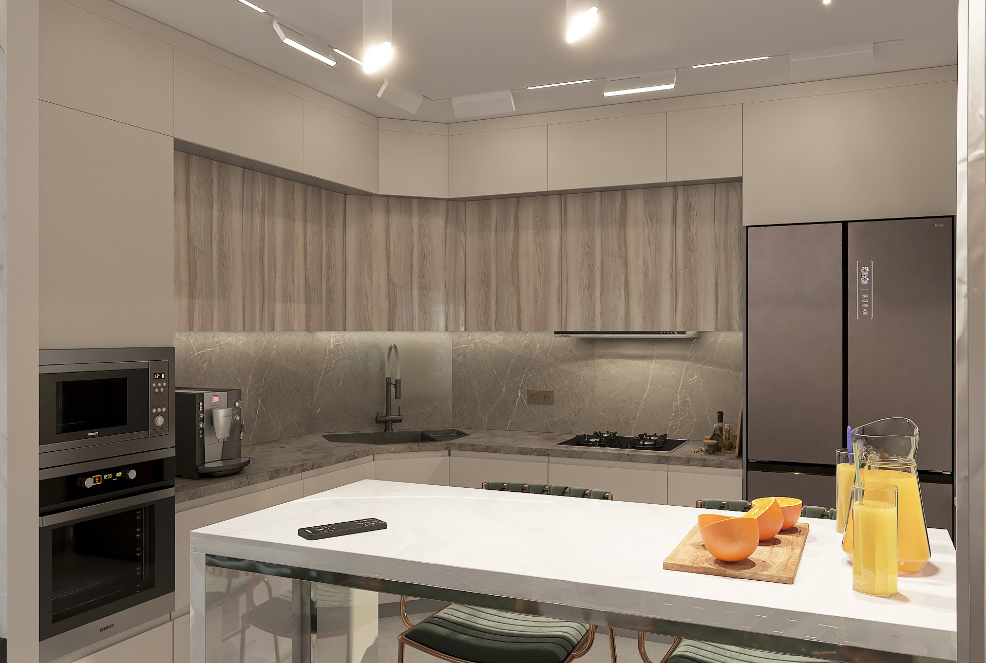 Объединённая гостиная и кухня с природными акцентами создают уют для семьи и гостей. Яркая детская с учебными зонами и удобным хранением, спокойная спальня родителей и лоджия-зона для отдыха продуманы для комфорта. Просторная отдельная гардеробная с раздвижными стеклянными перегородками позволяет удобно хранить одежду и обувь всей семьи, поддерживает порядок в повседневной жизни. Продуманное многоуровневое освещение и практичные материалы подчёркивают функциональность и современный стиль проекта.